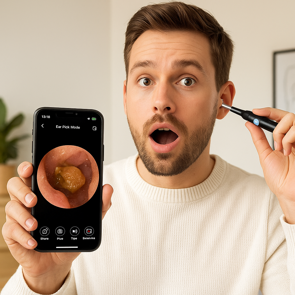 Avec l’otoscope connecté, observez en direct sur votre smartphone et retirez la cire en toute sécurité. Une technologie simple, précise et sans danger, qui transforme votre routine d’hygiène en un vrai moment de révélation.